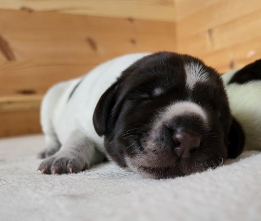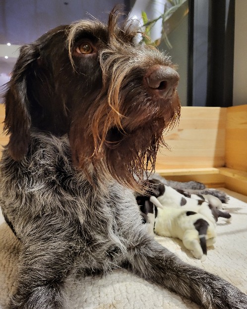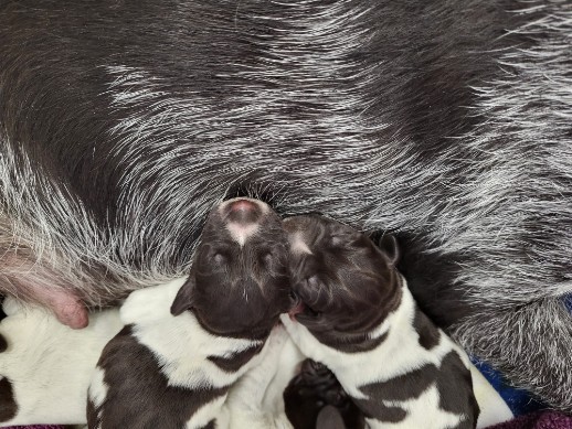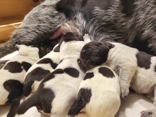 Am 22.Januar 2024 hat Motte den B-Wurf mit sechs kräftigen braunschimmel Welpen zur Welt gebracht (5/1).